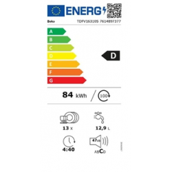 Conso énergie prog. Eco pour 100 cycles 84 kWh